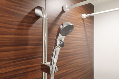 高級感と清潔感があるメタル調のシャワーヘッド。