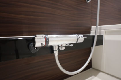 温調ハンドルで温度を設定すれば、お湯が熱くなったり冷たくなったりせず、安定した温度のお湯が得られます。