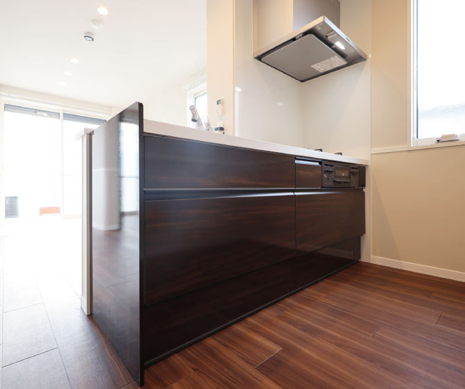 リビングにいる人と会話を楽しみながら料理ができる、対面式カウンターキッチンを採用しています。