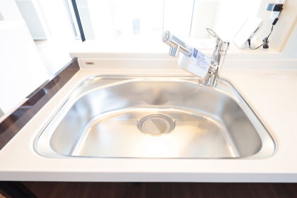 奥行きにゆとりを持たせたフォルムで、大きな鍋もラクに洗えるサイズです。