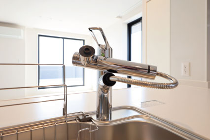シンクの隅々までしっかり洗える浄水機能付き引き出しシャワー水栓。
