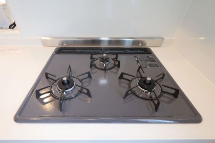 お手入れしやすく、見た目にも美しいハイパーガラスコートトップ3口ガスコンロを採用しています。